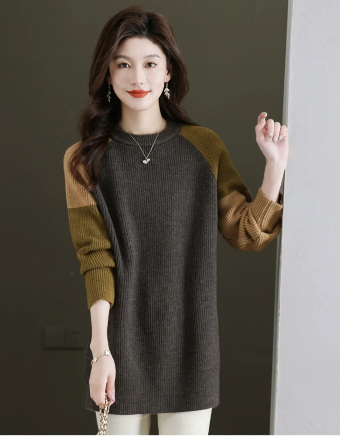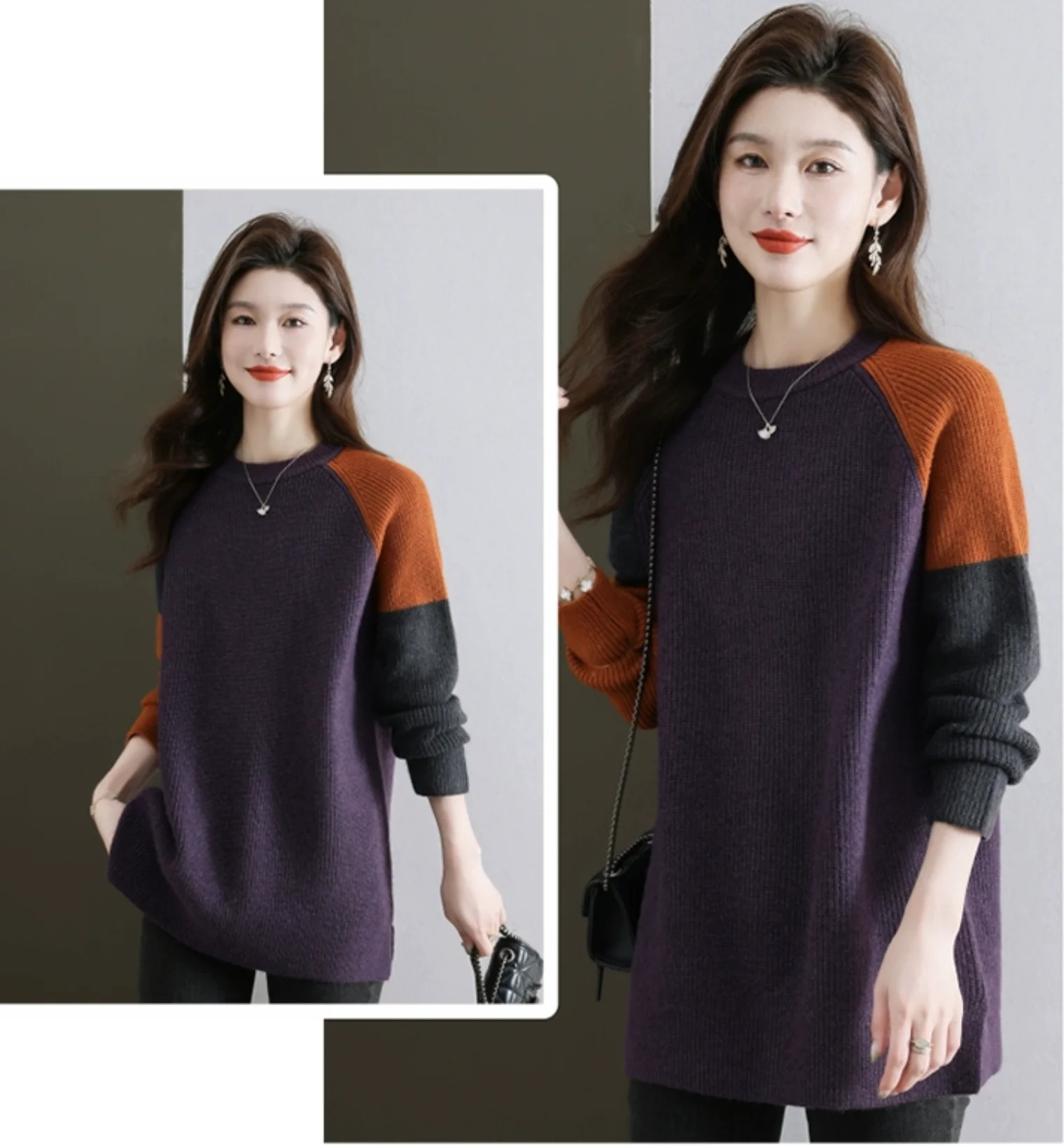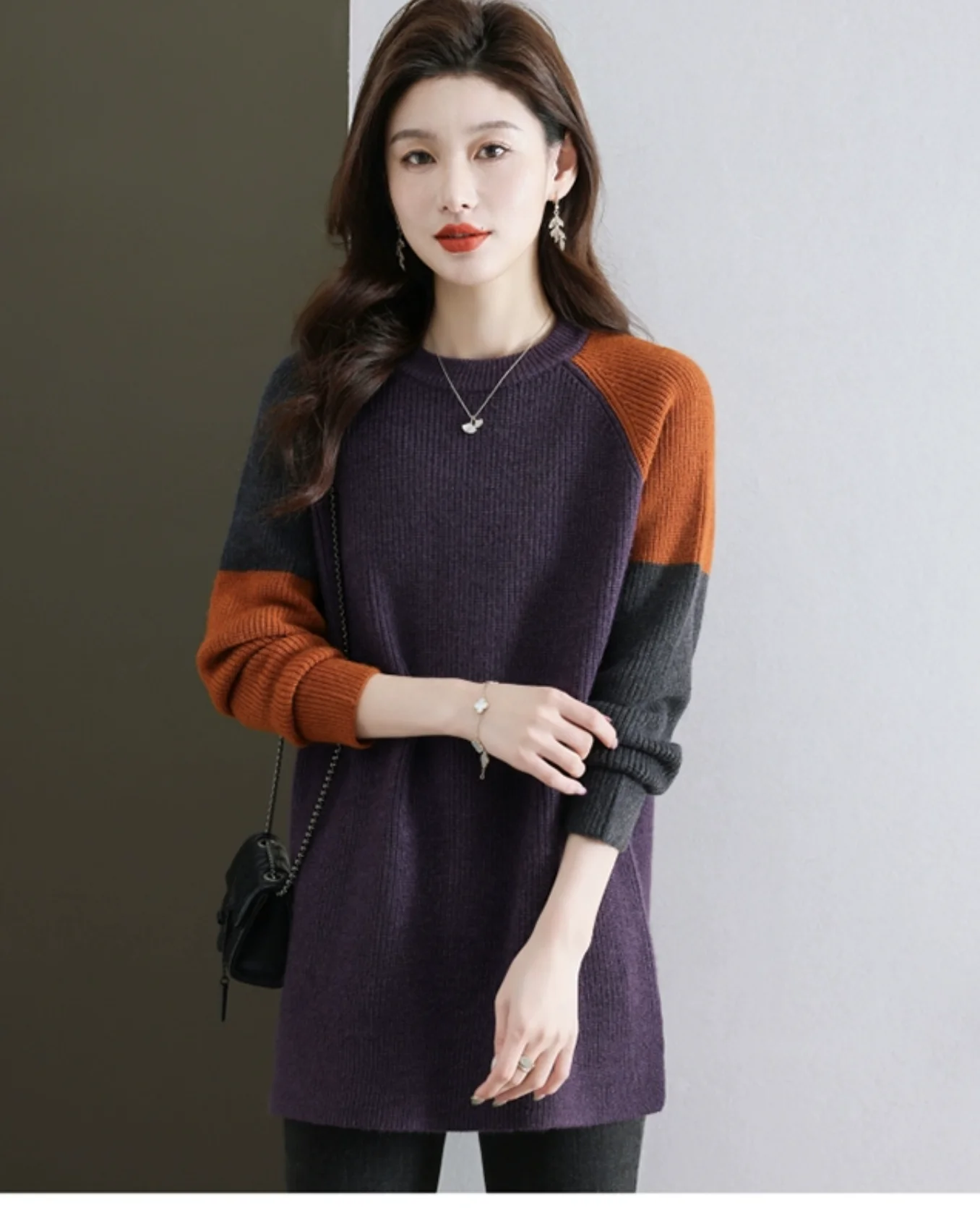 High-End European Sle Color Blo Long Sweater Women'S Loose Inner Wool Blend Base Irt Comfortable Soft Knitted Top