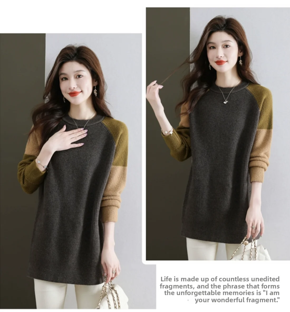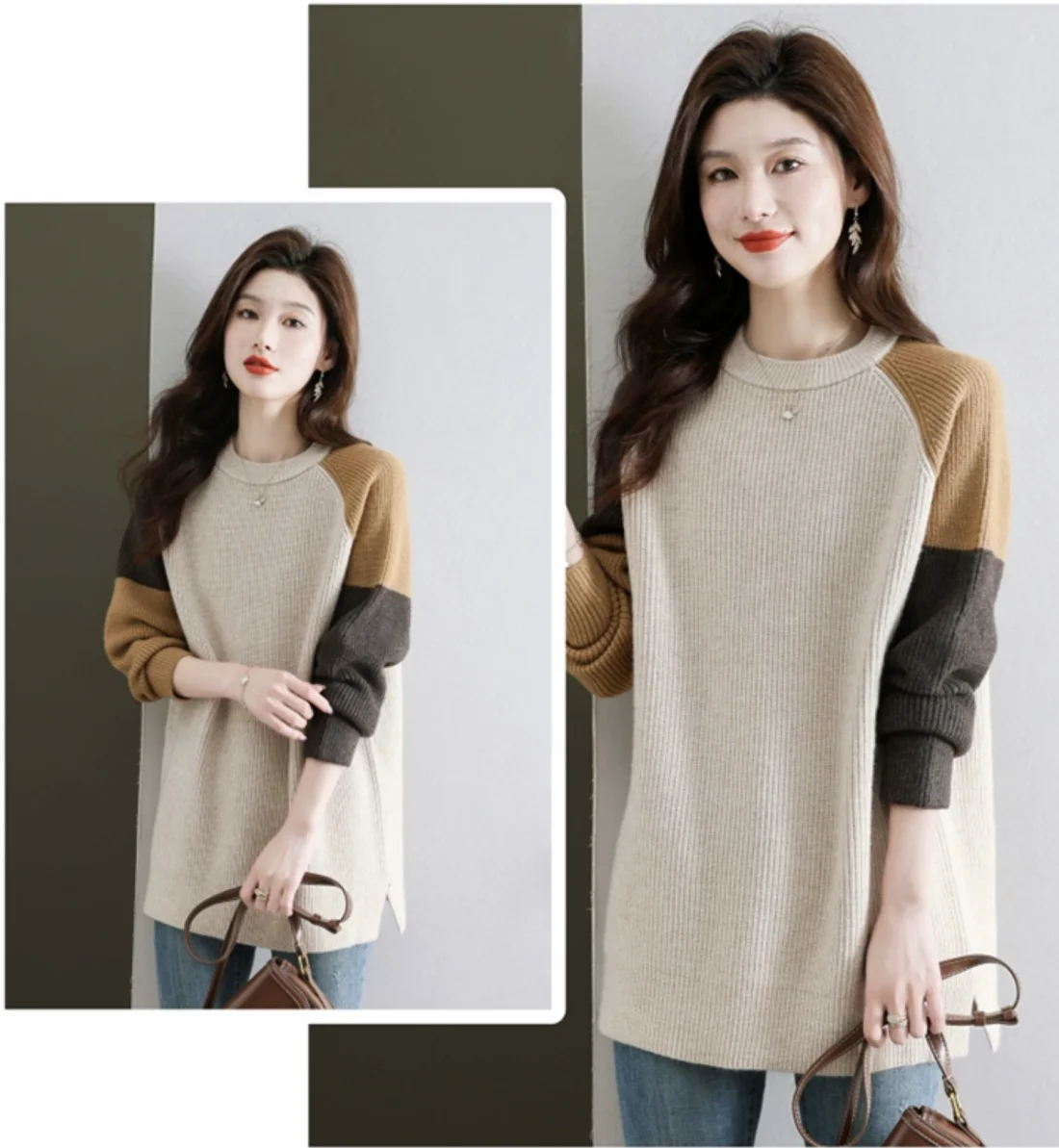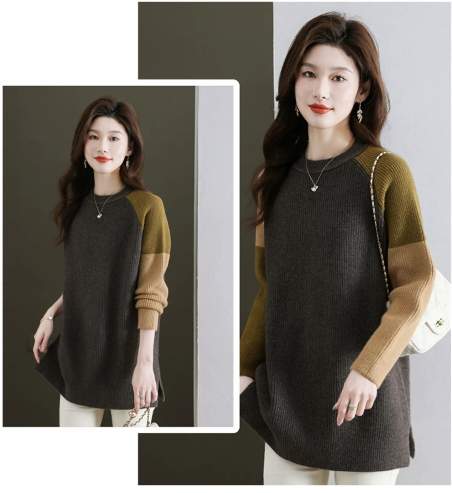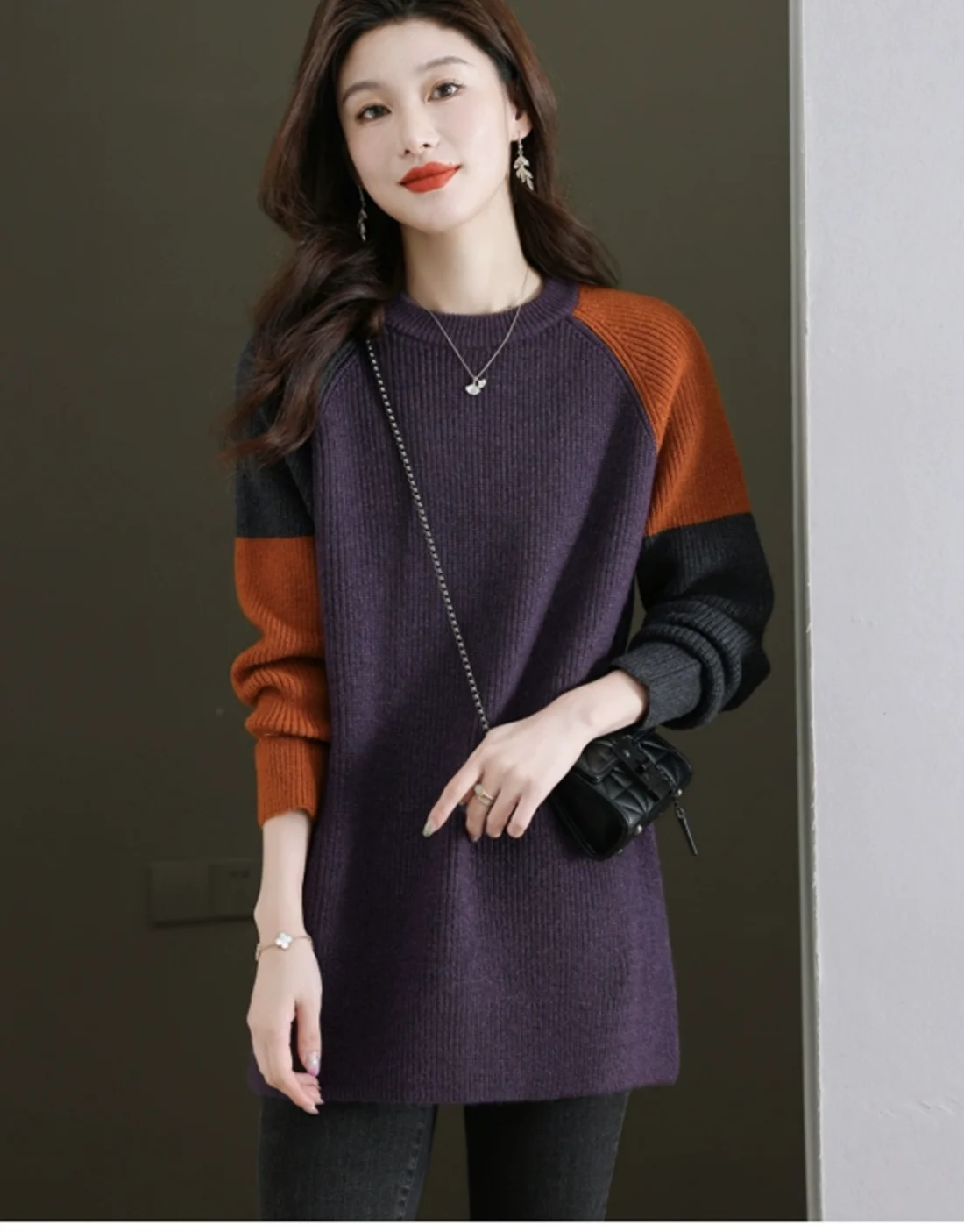 High-End European Sle Color Blo Long Sweater Women'S Loose Inner Wool Blend Base Irt Comfortable Soft Knitted Top