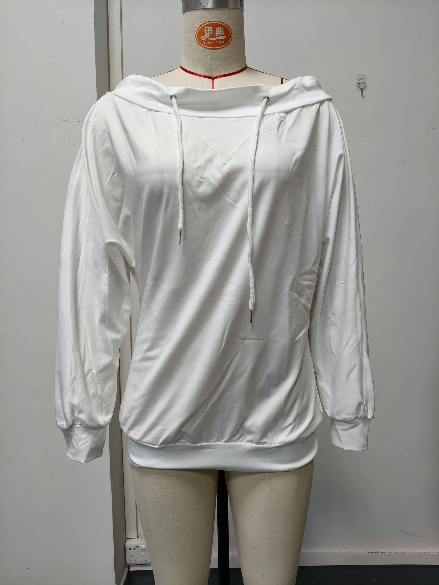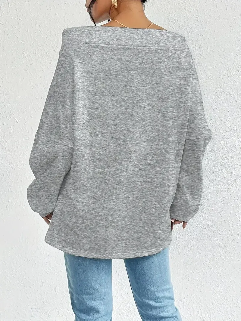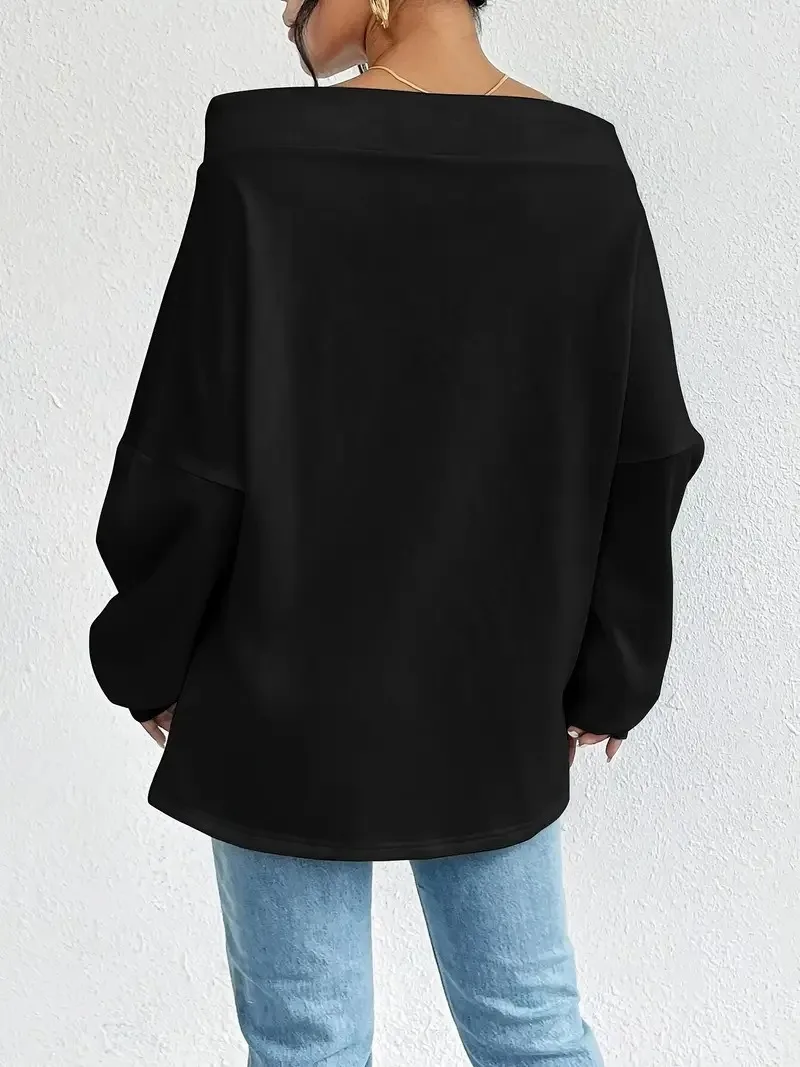 New Autumn and Winter Cross-Border Women'S Sexy off Shoulder Drawstring One Shoulder Loose Sweatshirt from Europe and America